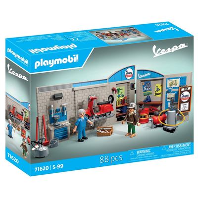 Die Marke Vespa steht weltweit für italienisches Design, Eleganz und eine unbeschwerte Lebensart. Seit den 1940er Jahren ist Vespa ein Symbol für Freiheit und Mobilität und hat Fans auf der ganzen Welt begeistert. Mit den PLAYMOBIL-Spielsets, die der Vespa gewidmet sind, können diese Faszination und das Lebensgefühl der 60er Jahre hautnah erlebt werden. Ob als Teil einer Sammlung oder als Spielzeug für kreative Abenteuer – die Vespa Werkstatt bringt den Kult um die Vespa direkt nach Hause.