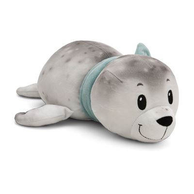 Der NICI Seehund „Bente“ ist mit seinen 64 cm in der liegenden Position ein idealer Kuschel- und Spielgefährte für Kinder und Erwachsene. Gefertigt aus super softem Stretchplüsch-Material, überzeugt Bente durch seinen besonders weichen und anschmiegsamen Plüschkörper. Sein naturgetreues, grau bedrucktes Fell, die sanft blickenden schwarzen Augen und die gestickte Nase mit angedeuteten Barthaaren verleihen ihm einen liebenswerten und realistischen Ausdruck. Ein Highlight ist der türkise Schal, der Bente nicht nur warm hält, sondern ihm auch einen charmanten Farbakzent verleiht. Ob zum Kuscheln im Bett, Spielen auf dem Teppich oder als dekoratives Element im Kinderzimmer – Seehund Bente begeistert durch sein niedliches Design und seine angenehme Haptik. Ein treuer Begleiter, der in jedem Kinderzimmer für Freude sorgt.