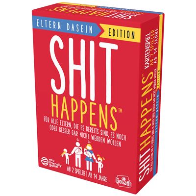 „Shit Happens – Eltern Dasein“ ist die neueste Ausgabe des beliebten Partyspiels, das sich diesmal ganz den Herausforderungen des Elterndaseins widmet. Dieses Kartenspiel fordert 2 bis 4 Spieler heraus, absurde und oft unangenehme Situationen aus dem Leben von Eltern auf einer Skala von 1 bis 100 nach ihrem „Elends-Index“ zu bewerten. Spieler müssen ihr Gespür dafür unter Beweis stellen, welche Eltern-Erfahrungen als schlimmer einzustufen sind. Ob es um die schlaflosen Nächte, die endlosen Diskussionen mit dem Nachwuchs oder peinliche Momente im Familienleben geht – das Spiel zeigt, dass es im Elternsein immer noch schlimmer kommen kann.