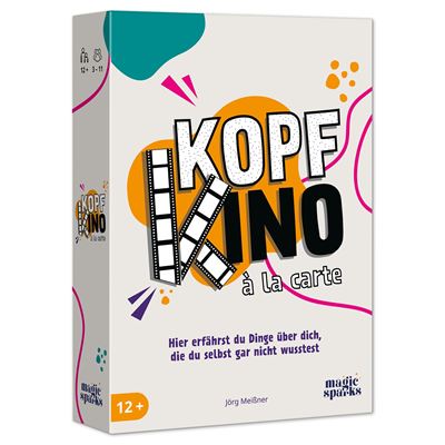 Die "Kopfkino à la carte" Original Edition ist ein humorvolles Partyspiel, das Lacher und Spaß in jede Spielrunde bringt. Die Spieler legen ihren Mitspielern die wildesten und skurrilsten Behauptungen in den Mund und sorgen so für jede Menge Kopfkino. Der Ablauf ist einfach und sorgt für immer neue, unterhaltsame Situationen: