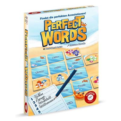 "Perfect Words" ist ein kooperatives Wort-Assoziationsspiel von Paul-Henri Argiot, das für 2 bis 6 Personen ab 12 Jahren geeignet ist. Gemeinsam erstellt ihr ein Kreuzworträtsel, indem ihr Wortkarten aus der Auslage platziert und Wortlinien bildet, die zu einem passenden Überbegriff führen. Das Ziel ist es, dass möglichst viele Spieler den gleichen Überbegriff zu einer Wortlinie finden – ohne über die Assoziationen sprechen zu dürfen. In drei Phasen entwickelt sich das Spiel von der Platzierung der Wortkarten über das Assoziieren bis hin zum gemeinsamen Erraten der Überbegriffe. Mit 504 unterschiedlichen Wortkarten bietet "Perfect Words" eine Vielzahl an Kombinationen und langanhaltenden Spielspaß.