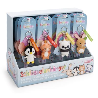 Die Mini Funnies von NICI begeistern als flauschige Schlüsselanhänger durch ihr niedliches Design und der besonders handlichen Größe. Jeder der vier kleinen plüschigen Hingucker überbringen eine kleine Botschaft, die auf einer hübschen Satin-Schlaufe zu finden ist. Schön zum Verschenken für verschiedenste Anlässe – oder einfach zum Selbstbehalten. Die 5cm großen Plüschanhänger warten in einem farbenfrohen Display mit Hängevorrichtung auf ihre neuen Begleiter. Die Schlüsselanhänger sind Teil der NICI GREEN Produktwelt. Für NICI GREEN Produkte verwenden wir fast ausschließlich Plüsch- und Füllstoffe, die aus recycelten Materialien bestehen. Hierfür werden vor allem recycelte PET-Flaschen zu RPET verarbeitet.
