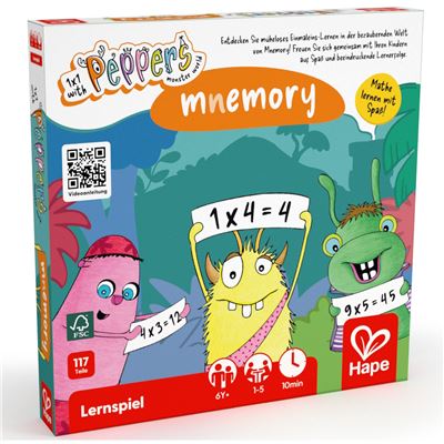 Mnemory – Mit Peppers spielend das Einmaleins und die Merkfähigkeit verbessern! Mit „Mnemory“ wird das Lernen des Einmaleins zu einem spannenden Abenteuer. Die quirligen Peppers-Monster begleiten Kinder dabei, mathematische Fähigkeiten und Gedächtnisleistungen gleichermaßen zu trainieren. Das Spiel basiert auf der Mnemotechnik, einer bewährten Methode zur Verbesserung des Erinnerungsvermögens, und verbindet kreatives Lernen mit spielerischem Spaß. Mit zwei verschiedenen Spielvarianten können Anfänger leicht einsteigen und Fortgeschrittene ihre Rechenkünste auf die Probe stellen. So wird Mathematik für 2 bis 6 Spieler zu einem gemeinsamen Erlebnis voller Abwechslung und Erfolgserlebnisse.