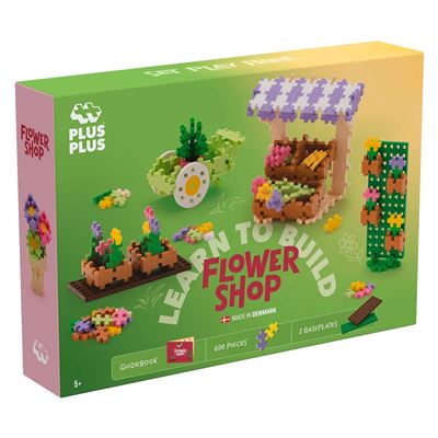 Mit dem Plus-Plus Kreativ-Bausteine-Set Blumenladen entstehen fantasievolle Bauwerke rund um eine bunte Blumenwelt. Das Set enthält 600 farbenfrohe Plus-Plus-Steine und 2 Grundplatten, mit denen Kinder einen eigenen Blumenladen, Blumenarrangements, einen Marktstand oder ganz individuelle Kreationen erschaffen können. Dank beiliegendem Ideenbuch mit Schritt-für-Schritt-Anleitungen gelingt der Einstieg leicht – gleichzeitig bleibt immer genügend Raum für eigene Bauideen.
