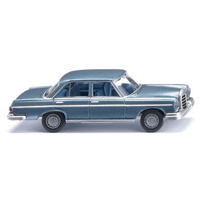 Im August 1965 präsentierte Mercedes-Benz eine neue Generation der Oberklasse, die mit dem Modell 280 S das Kapitel der Heckflossen-Ära beendete. Die von Paul Bracq gezeichnete Karosserie war geradliniger, sachlicher und zugleich stilprägend für die zukünftige S-Klasse. WIKING miniaturisiert den eleganten Klassiker im Maßstab 1:87 und greift dabei alle wichtigen Merkmale detailgetreu auf. Die lackierte Karosserie in graublau-metallic mit Klarlack-Finish bringt die noble Ausstrahlung des Vorbilds hervorragend zur Geltung. Zierleisten, Türgriffe und Fensterrahmen sind silbern abgesetzt, was dem Modell zusätzlich optische Tiefe verleiht. Das violettblaue Interieur spiegelt die Farbwelten der damaligen Mercedes-Oberklasse ebenso authentisch wider wie der feine silberne Schriftzug am Heck. Mit diesem Modell gelingt WIKING ein besonders stilvolles Sammlerstück, das die Formensprache der späten Sechzigerjahre eindrucksvoll festhält.