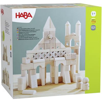 - Die Holzbausteine lassen sich mit vielen Spielsystemen und Spielfiguren von HABA ergänzen